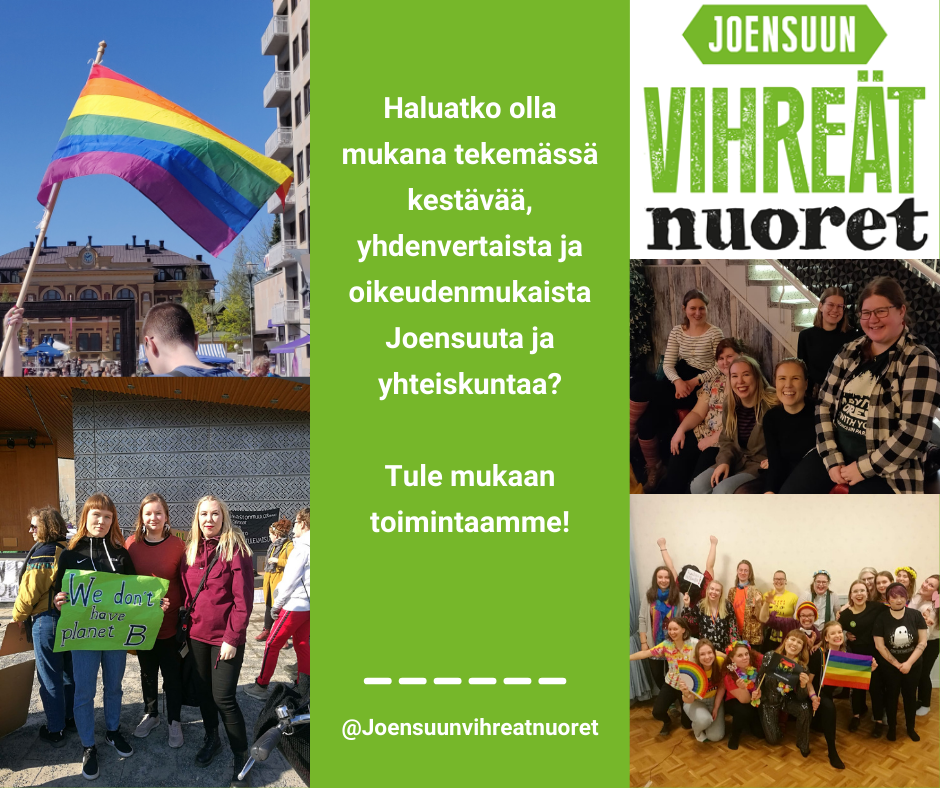 Lisätietoa meistä ja tapahtumista Facebookissa ja Instagramissa @joensuunvihreatnuoret