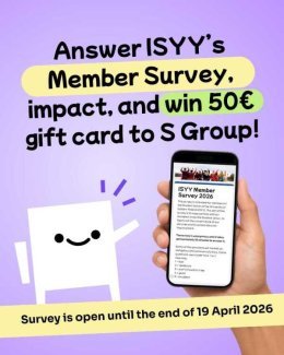 Ticket sales start on Thursday 9 April 8 am at ISYY office (in Studentia building, C entrance, Yliopistonranta 15). The remaining tickets, if there are any, will go on sale on Kide.app on the same day at 1 pm. The ticket price is 20 €. One person can buy a maximum of two tickets. |