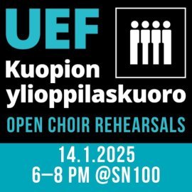 UEF Kuopio student choir holds open rehearsals on the 14th of January in SN100 at 18.00. We sing different kinds of music and perform in our concerts and other events and functions.
