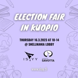 Welcome to the Parliamentary Election Fair in Joensuu organised by the Student Unions of the University of Eastern Finland and Savonia UAS! Come and get to know and discuss with the Parliamentary Election Candidates.